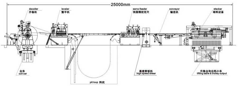 廣州市漢達(dá)五金機(jī)械有限公司的鋼板下料生產(chǎn)線,用于將整卷鋼材通過(guò)上料、開(kāi)卷、入料、整平、NC 定尺送料、廢料處理、沖壓等一序列工序,加工成工廠所需的鋼板尺寸和形狀。