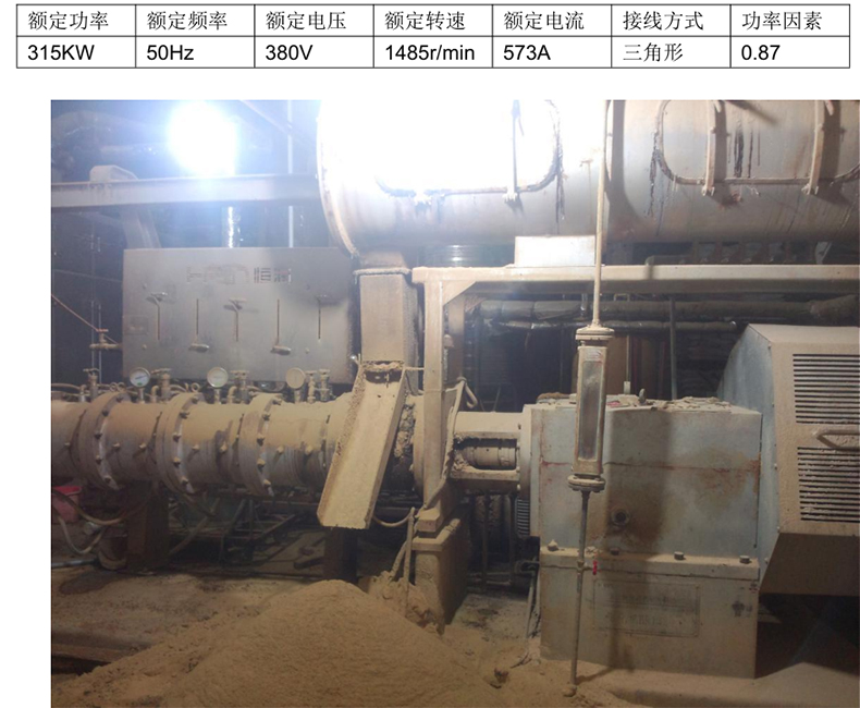 2、 、 改造設(shè)備概述: :客戶要求改造的設(shè)備為膨化機,達315KW 功率(實際銘牌數(shù)據(jù)如下表1)。膨化機工作原理為:利用膨化機的不等距非標(biāo)準螺旋系統(tǒng)的擠壓推進,物料中的氣體被排出,并迅速被物料填充,物料受剪切力作用而產(chǎn)生回流,使機膛內(nèi)的壓力增大,隨著摞旋與機膛間的磨擦使物料充分混合、擠壓、加熱、膠合、糊化而產(chǎn)生組織變化,原有的結(jié)構(gòu)受到破壞,同時機械能通過物料在膛內(nèi)的磨擦作用而轉(zhuǎn)化為熱能,使物料成為具有流動性質(zhì)的膠凝狀態(tài),物料被擠壓到出口時壓力由高壓瞬間變?yōu)槌?,由高溫瞬間變?yōu)槌兀斐伤盅杆俚貜慕M織結(jié)構(gòu)中蒸發(fā)出來,使其內(nèi)部形成無數(shù)微孔結(jié)構(gòu),再通過切割裝置,切割冷卻即膨化成形。