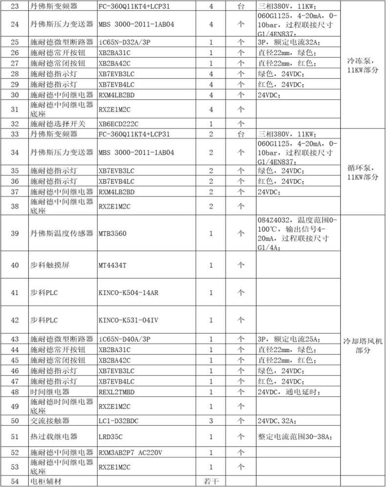 該系統(tǒng)設(shè)計之初,均沒有考慮冷卻泵、冷凍泵、循環(huán)泵采用變頻控制(如下表1),而是采用傳統(tǒng)的星三角啟動方式(舊電柜見下圖1),根據(jù)對系統(tǒng)運行工藝的觀察,泵總功率110.5KW,電能浪費嚴(yán)重,存在較大的節(jié)能空間。