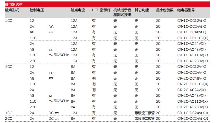 CR...(X)繼電器除了在保留CR繼電器體積小、容量大的特點(diǎn)以外,還進(jìn)一步擴(kuò)充了一組觸點(diǎn)型號(hào)的產(chǎn)品(包括配套使用的底座和附件),使產(chǎn)品線更加豐富和全面。
