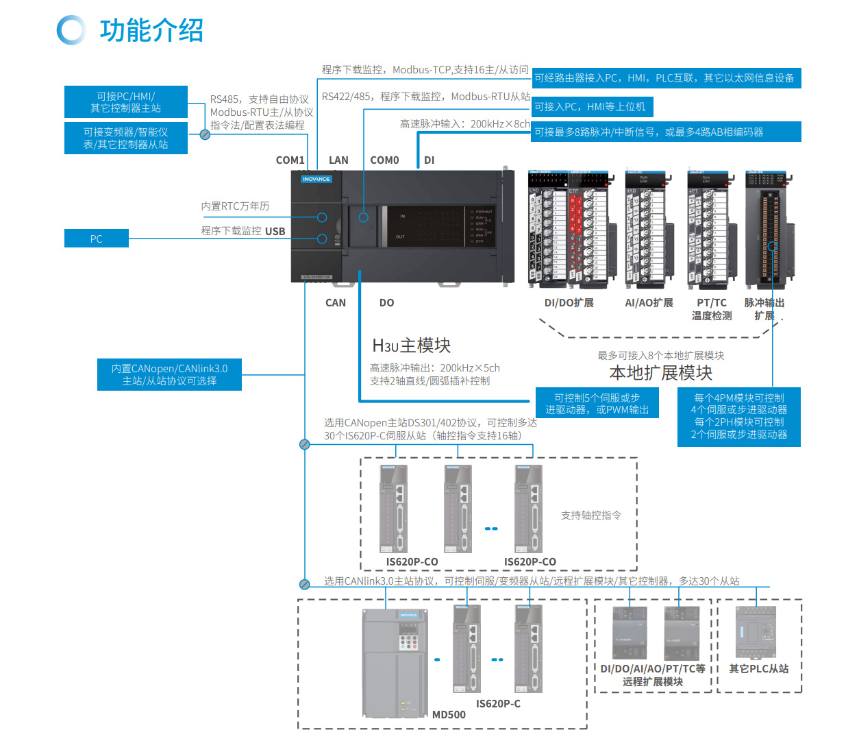 H3U系列PLC是匯川技術(shù)開發(fā)的第三代高性能小型PLC,采用新一代獨(dú)具匠心的PLC 架構(gòu)技術(shù),在增加更多豐富功能的情況下持續(xù)提升性能。配合完整且嚴(yán)格的軟件測(cè)試過(guò)程,使得PLC 穩(wěn)定可靠,值得信賴。